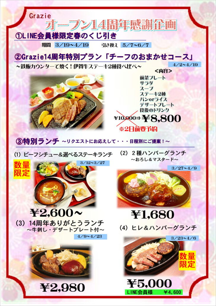 2日~5日のディナーは予約制で短縮営業です。(19:00入店ストップ)